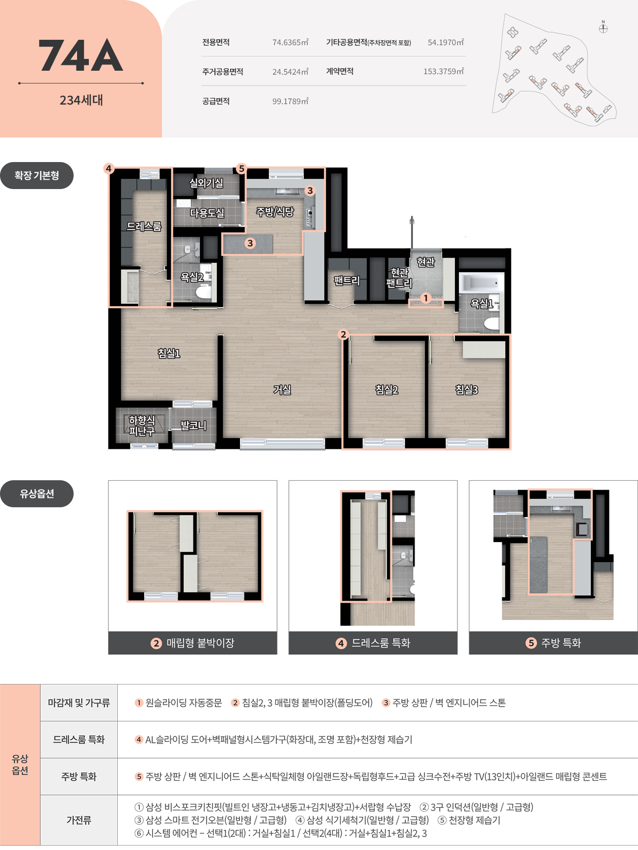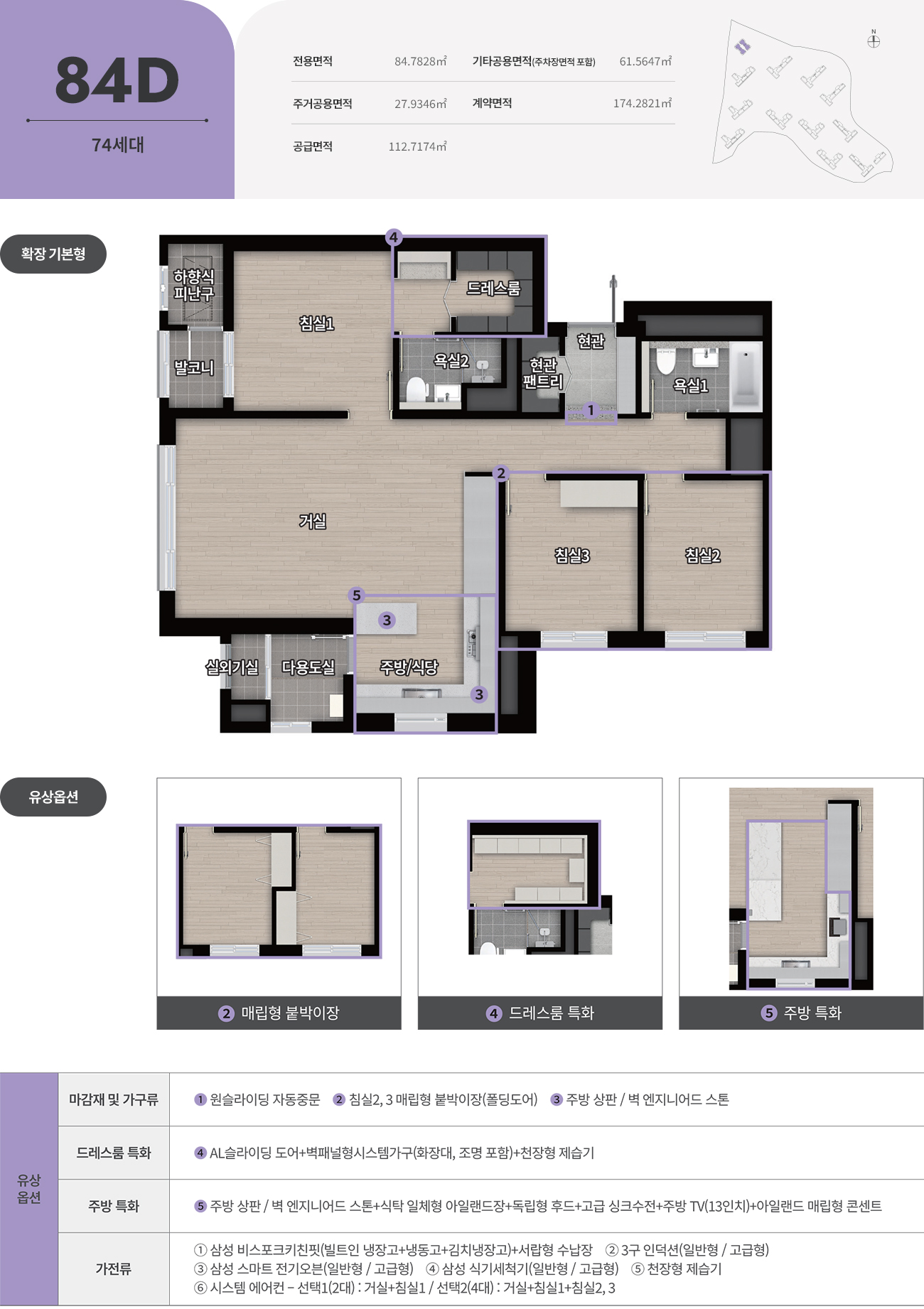 - 전용면적: 74㎡ / 84㎡ 중심의 실속형 평면
