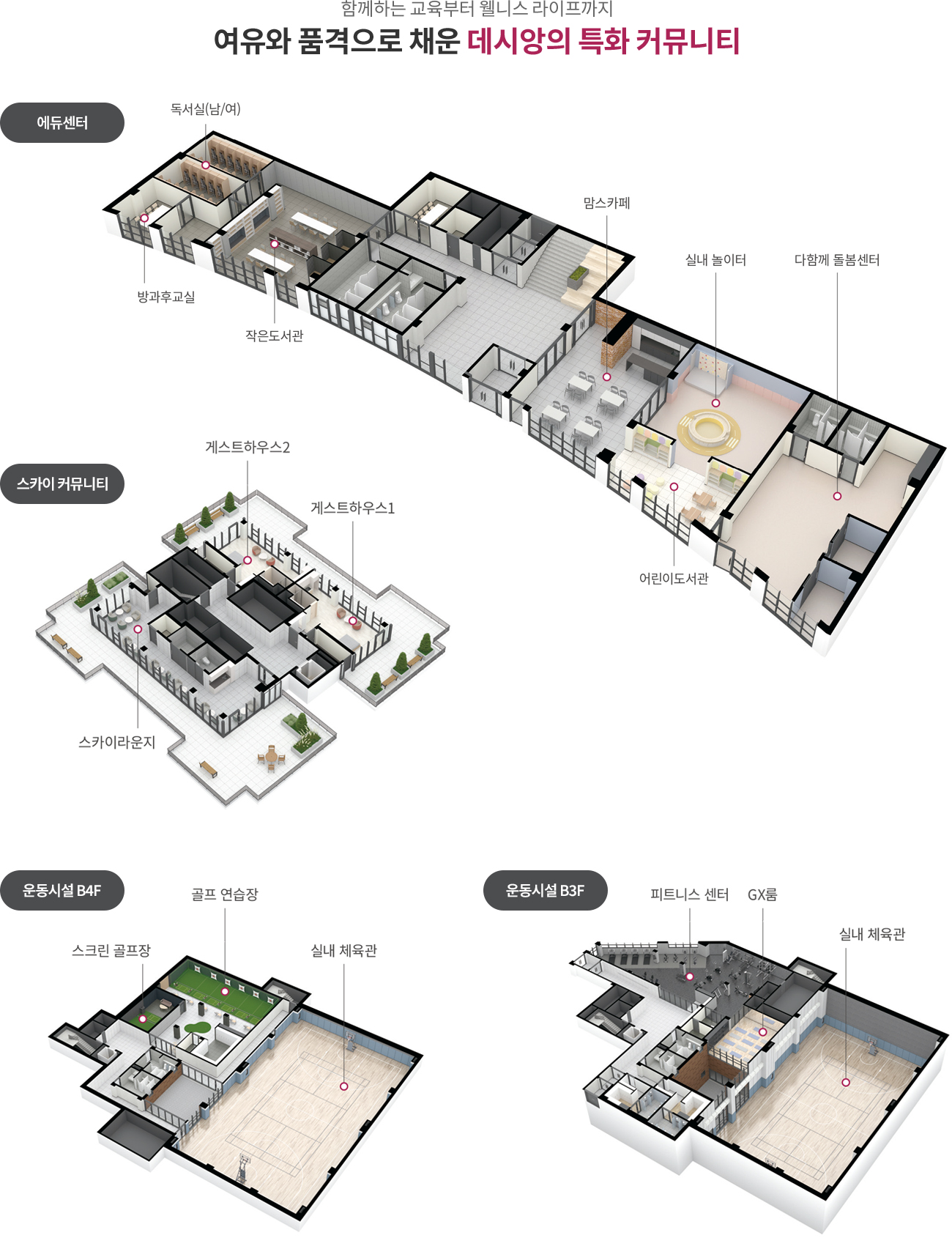 단지 규모만 보아도 지역 내 랜드마크 아파트로 손색이 없습니다. 대형 건설사 3곳이 함께 시공을 맡아 우수한 시공 품질과 세련된 디자인이 기대됩니다.